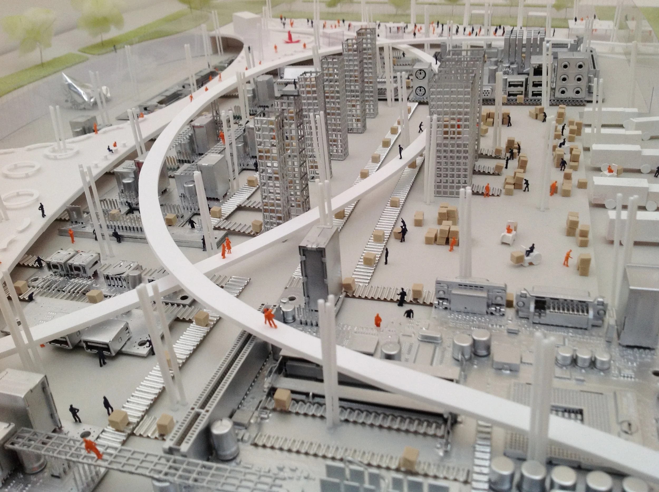製本と物流を一体化し、そこに公共的な美術館と図書館の機能を組み込むという某出版社の新たな工場計画です。一民間企業がつくる新しい公共施設の在り方が求められました。そこで傾斜した地形を活かして明快なセキュリティーの分離を図りながら、建物全体が美術館、図書館として機能する開かれた構成を考えました。ここを訪れる人はダイナミックに動き続ける製本工場の中を歩きながらアートに触れ、できたての本を手に取って自分の時間を楽しんでいきます。多機能と連動させながら製造工程を積極的に見せていくことで、企業としての新たなブランディングを図り、エンドユーザーからの発信拠点としても機能させていくことを考えています。